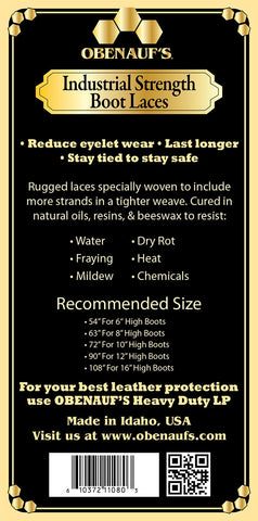 - Obenauf's waxed boot laces are hand dipped in our own formula right here in Idaho, creating our industrial strength boot laces!