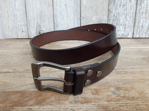 Belts are one solid piece of premium bridle leather finished to a gorgeous sheen. Nothing wearing out here.