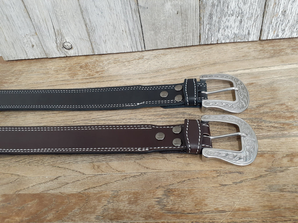 Brimstone ~ Wide Stitched Leather Belt- 1 3/4"