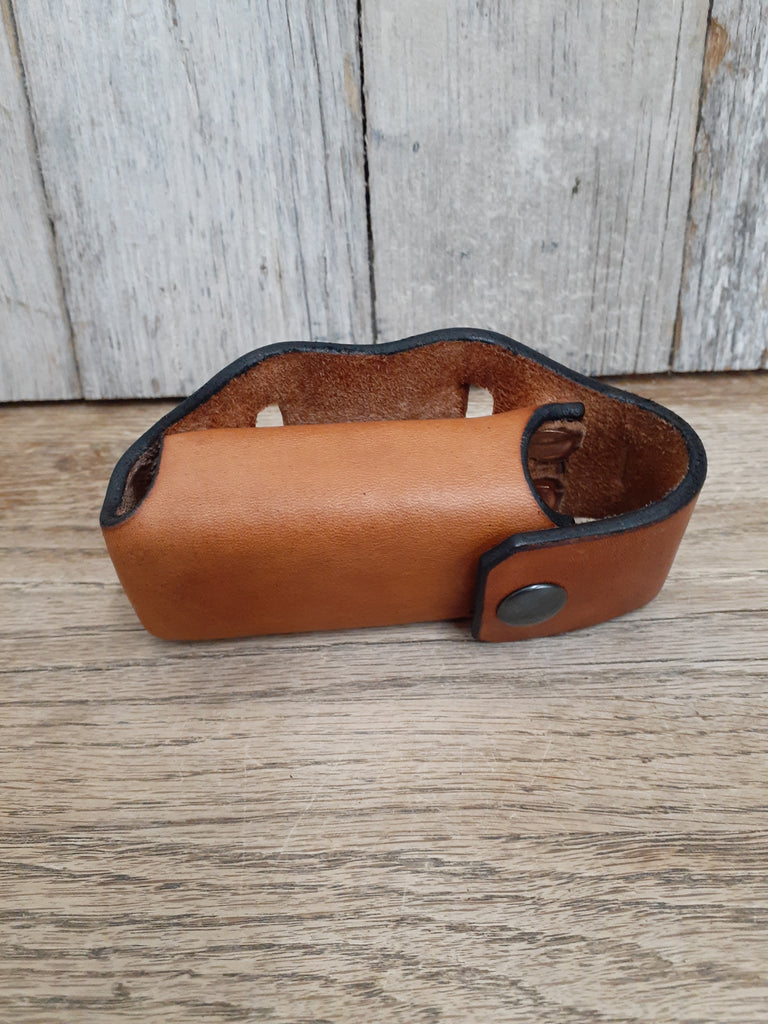 This Horizontal/Vertical Leather Sheath for Leatherman Multi-Tool is handmade in the U.S.A. and made of heavy 7oz vegetable leather for strength and durability. The whole case is one piece with no stitching and bound with heavy copper rivets for secure fastening. The sheath is pre-conditioned with natural leather conditioner for water resistance and is designed for belts up to 1.5" width, with horizontal or vertical carry options.