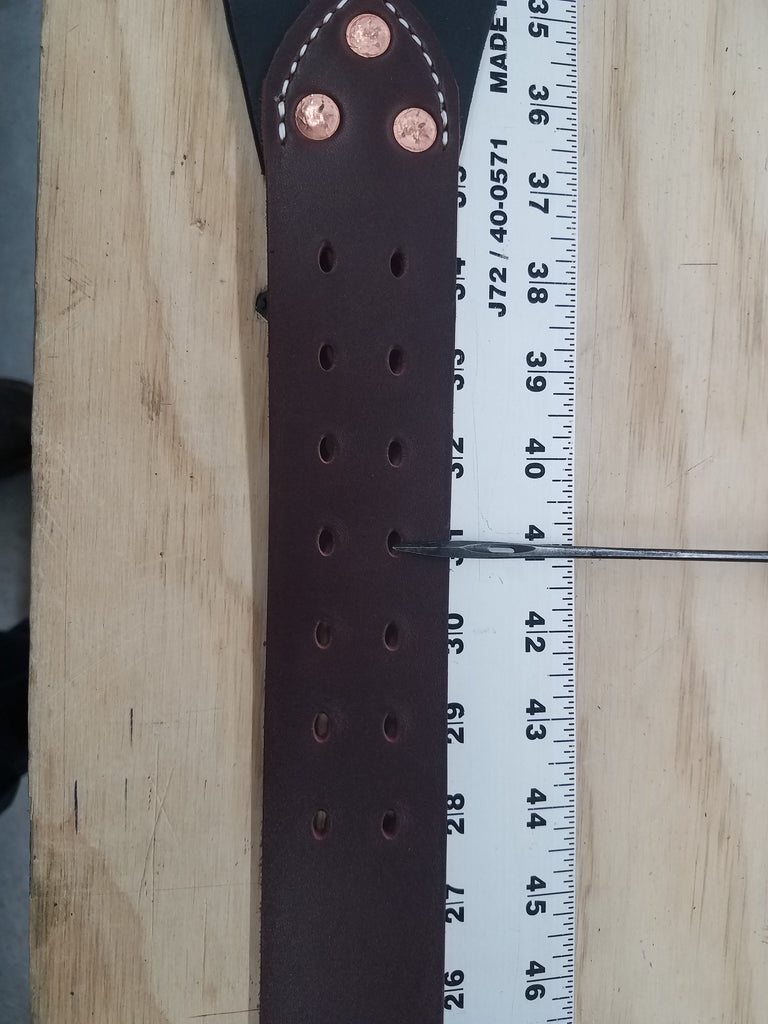 Place your existing tool belt in a straight line and measure from the end of the buckle to the most commonly used hole. That's the measurement I need to fit you correctly. Refer to the last three pictures for an example. If you do not have a tool belt to measure, you can get an "approximate" tool belt size by adding 6" to your pant waist size.
