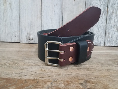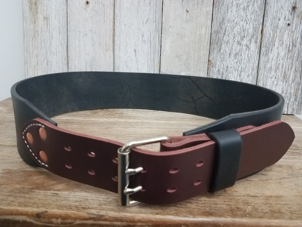 Main belt is 3" wide by 13-15 oz. Vegetable tanned Herman oak saddle skirting.